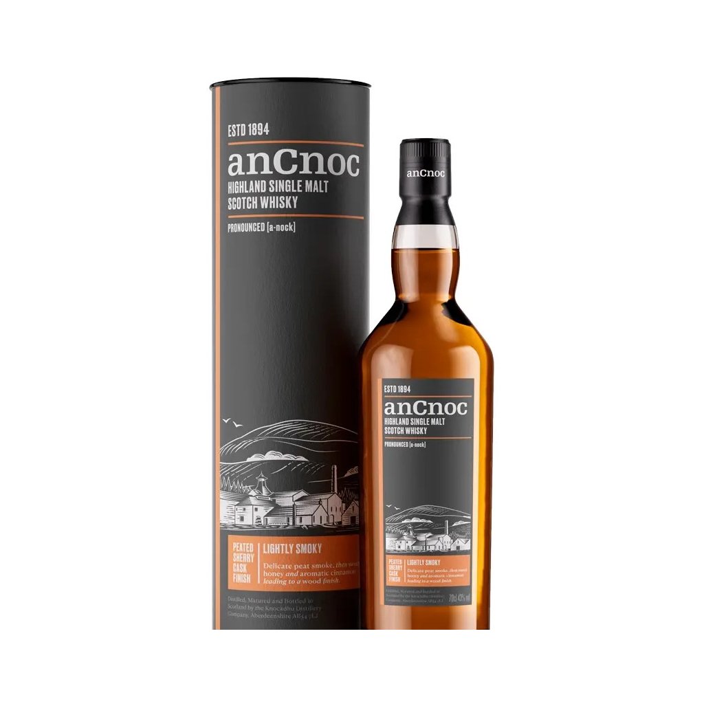 anCnoc se v letošním roce představuje s novou řadou, jejíž součástí je i toto peated sherry! Tato single malt whisky z palírny Knockdhu, založené v roce 1894 poblíž kopce Knock Hill (pro místní obyvatele známého pod gaelským názvem anCnoc), zrála v nejlepších sudech po sherry. Lahvuje se bez dobarvování a filtrace za sudena. Odhaluje jemnou rašelinovou vůni připomínající táborák v kombinaci s bohatými tóny krémové vanilky a medových jablek. Hladká, komplexní whisky s moderním nádechem z malé palírny, která používá velmi tradiční metody.