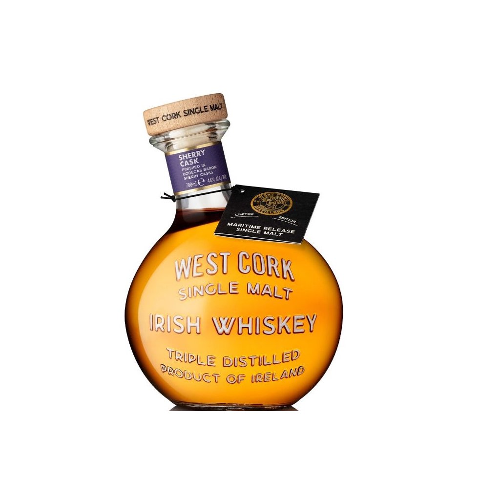 West Cork Maritime Sherry Cask Irish Whiskey je součástí unikátní řady inspirované námořní historií zakladatelů palírny West Cork. Tato edice je lahvována do speciálně navržených ručně foukaných sférických lahví s bočním hrdlem pro snadnější nalévání. Whiskey zraje nejprve v sudech po bourbonu a následně je dokončena v sudech po sherry z Bodegas Baron, což jí dodává bohatý a komplexní charakter. Lahvována je s obsahem alkoholu 46% a nabízí jedinečný zážitek pro milovníky irské whiskey.